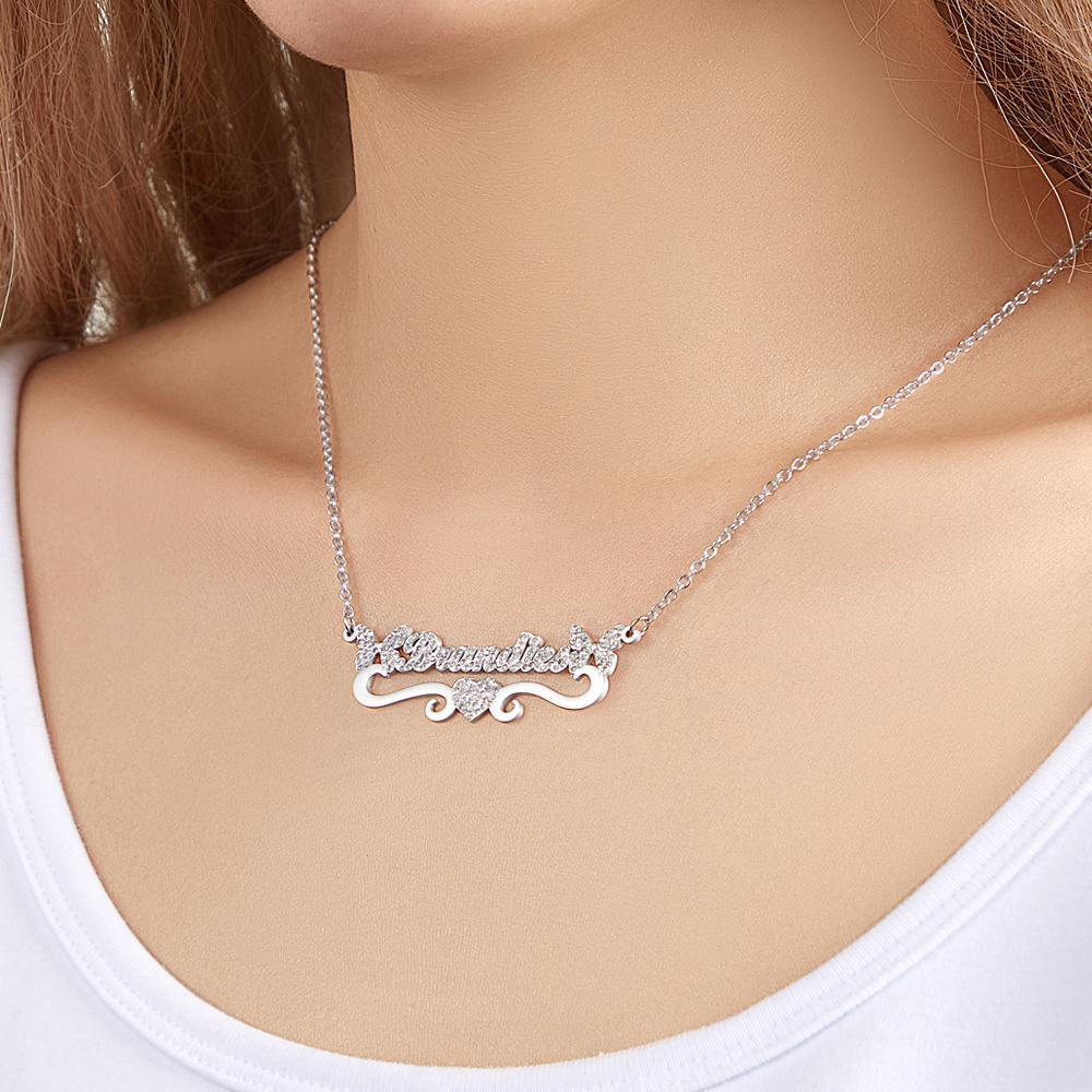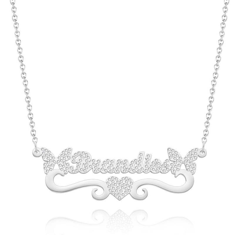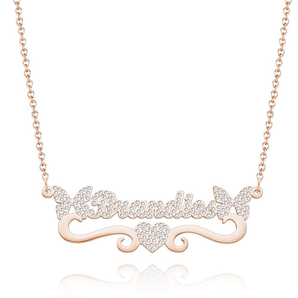 Custom Engraved Name Necklace Sparkling Butterfly Heart Diamond Gifts
