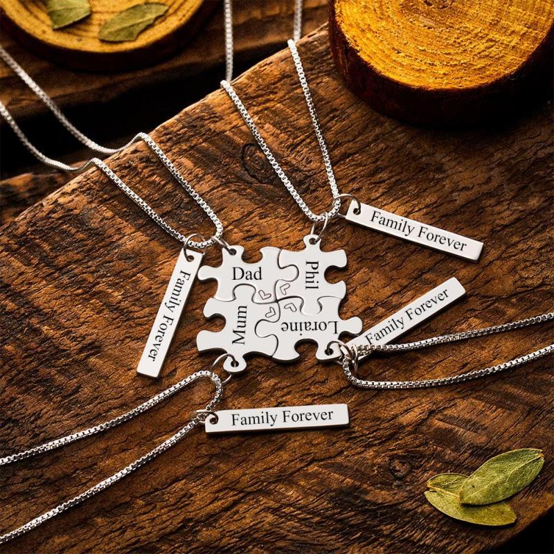 Custom Engraved Necklace Block Puzzle Necklace for Family Friends Couple