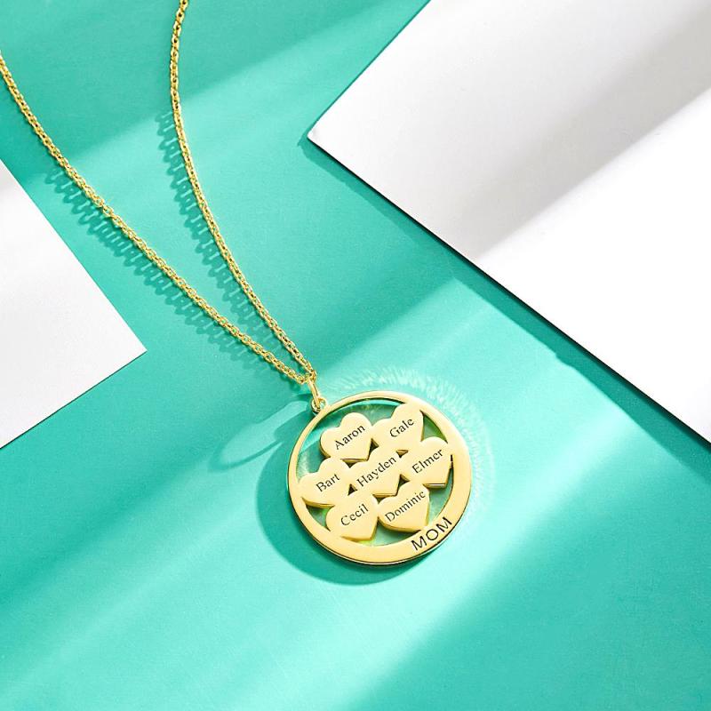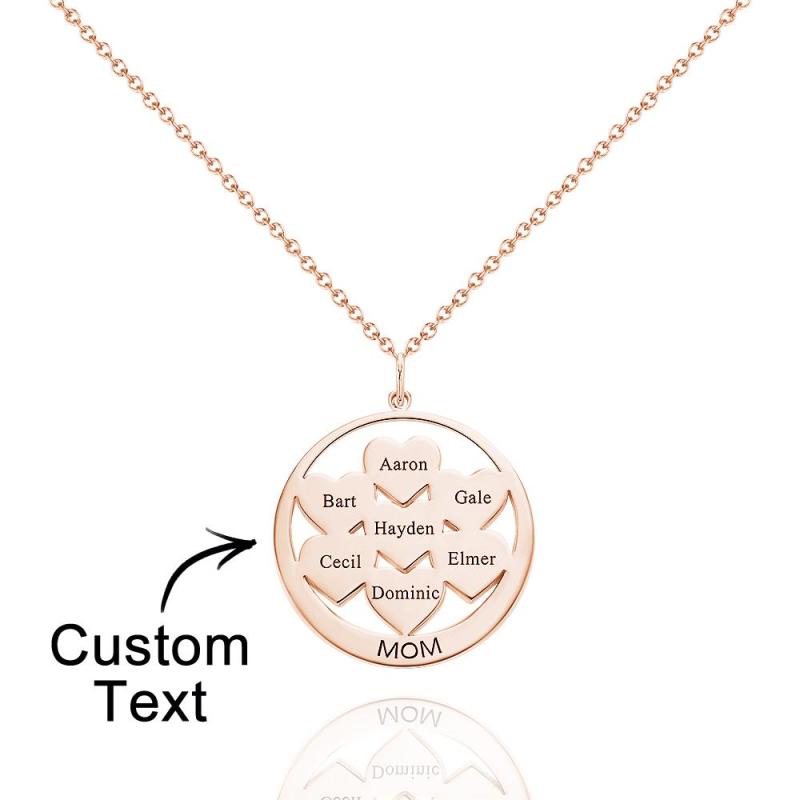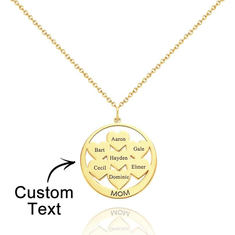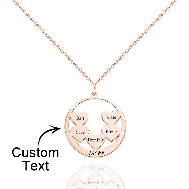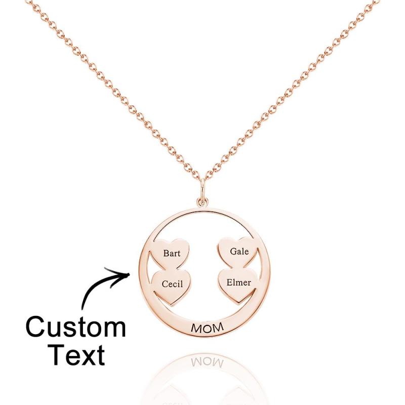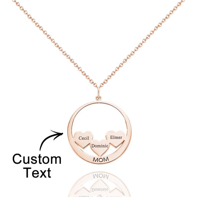 Custom Engraved Necklace Circle Hearts Mom Pendant Necklace Creative Gift