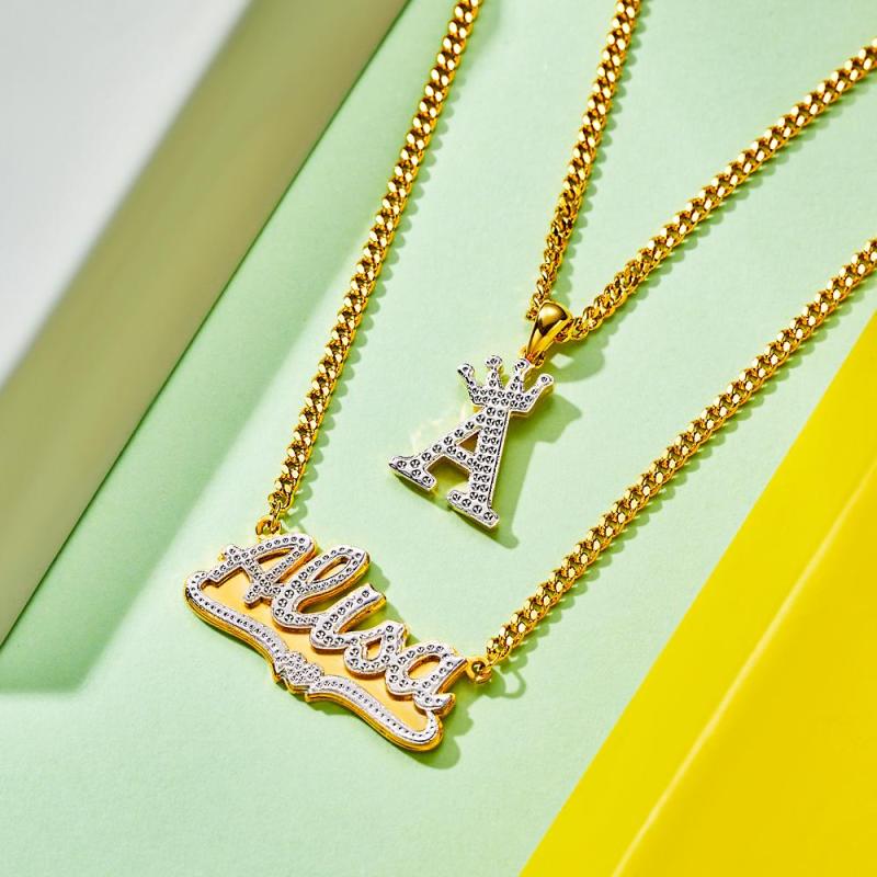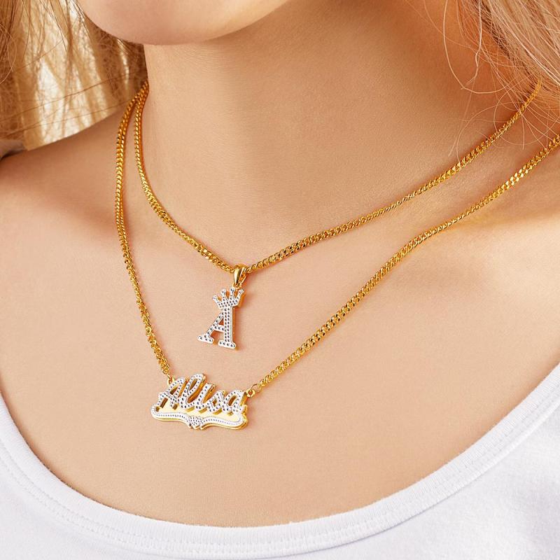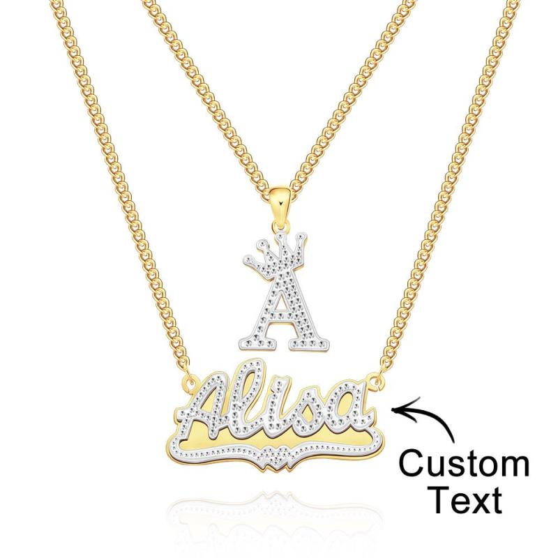 Custom Engraved Name Necklace Double Necklace Crown Letter Necklace Gift for Her