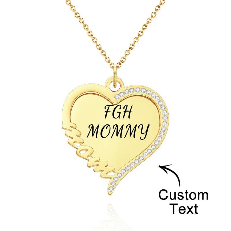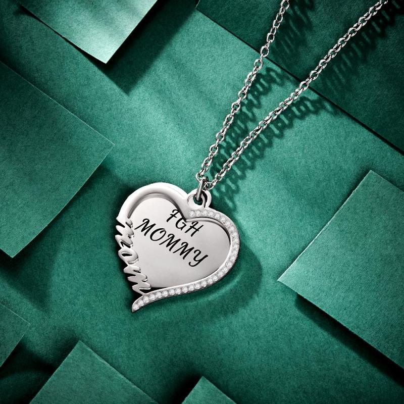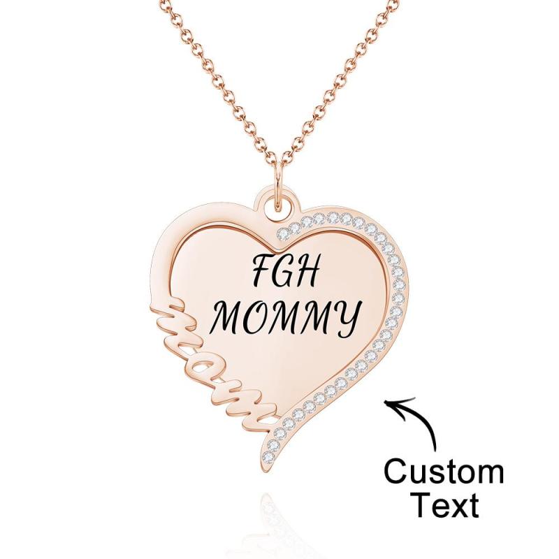Custom Engraved Necklace Heart Rhinestones Gift for Mother