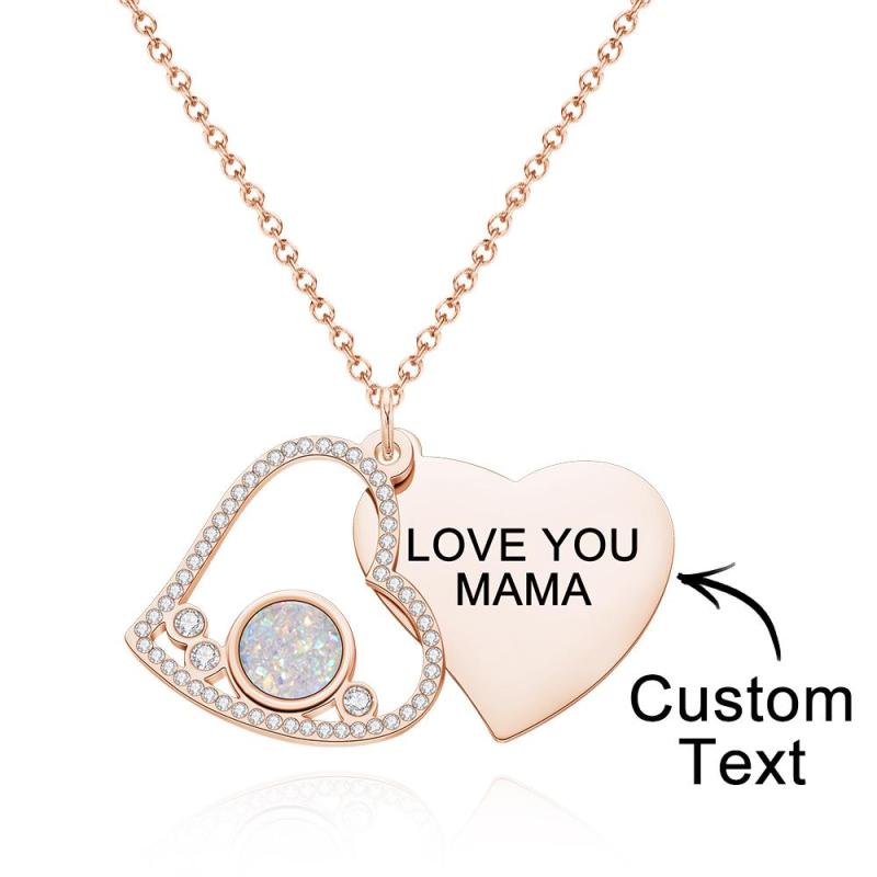 Custom Engraved Necklace Heart Shaped Double Rhinestone Gifts