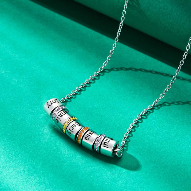 Custom Engraved Necklace Name Diamond Beads Necklace Gift for Women