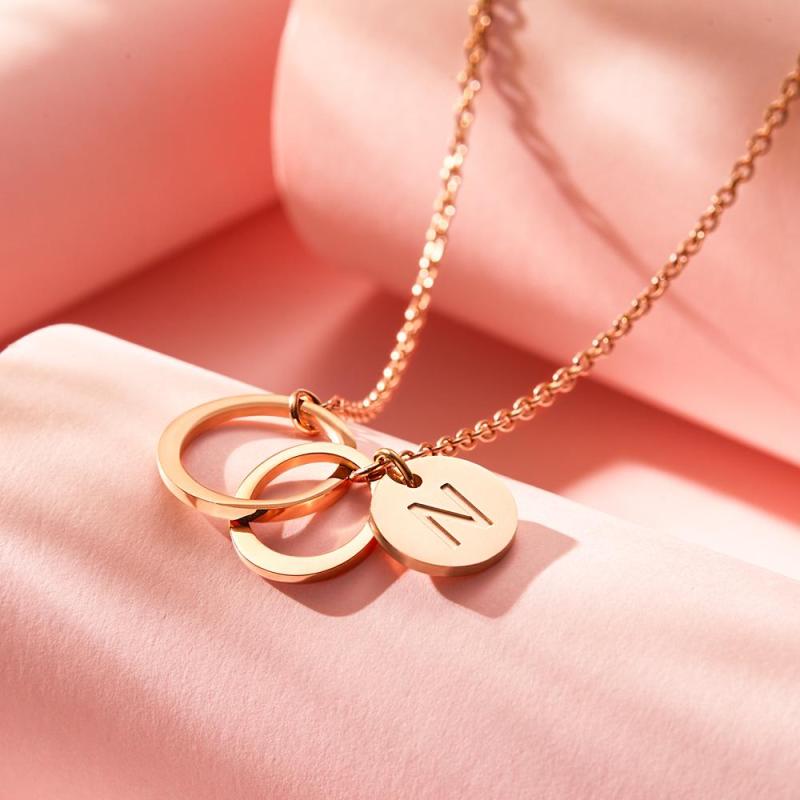 Custom Engraved Necklace Two Interlocking Circles Creative Gifts