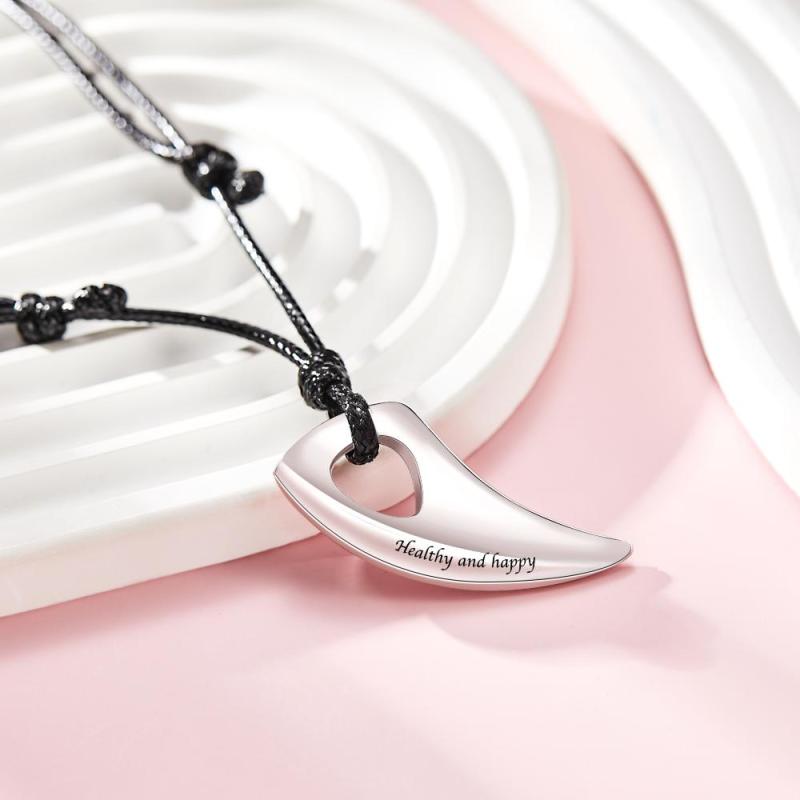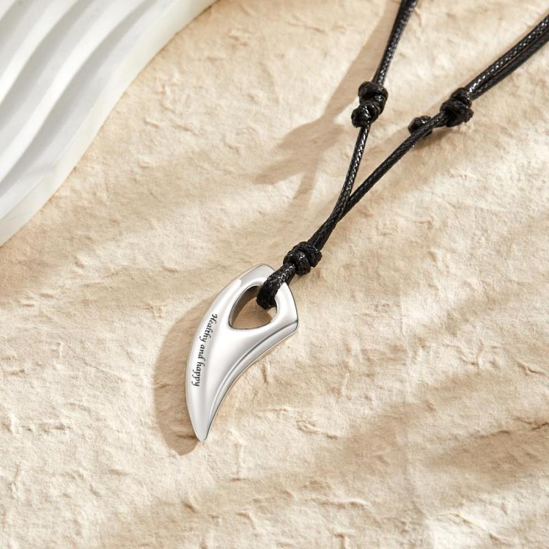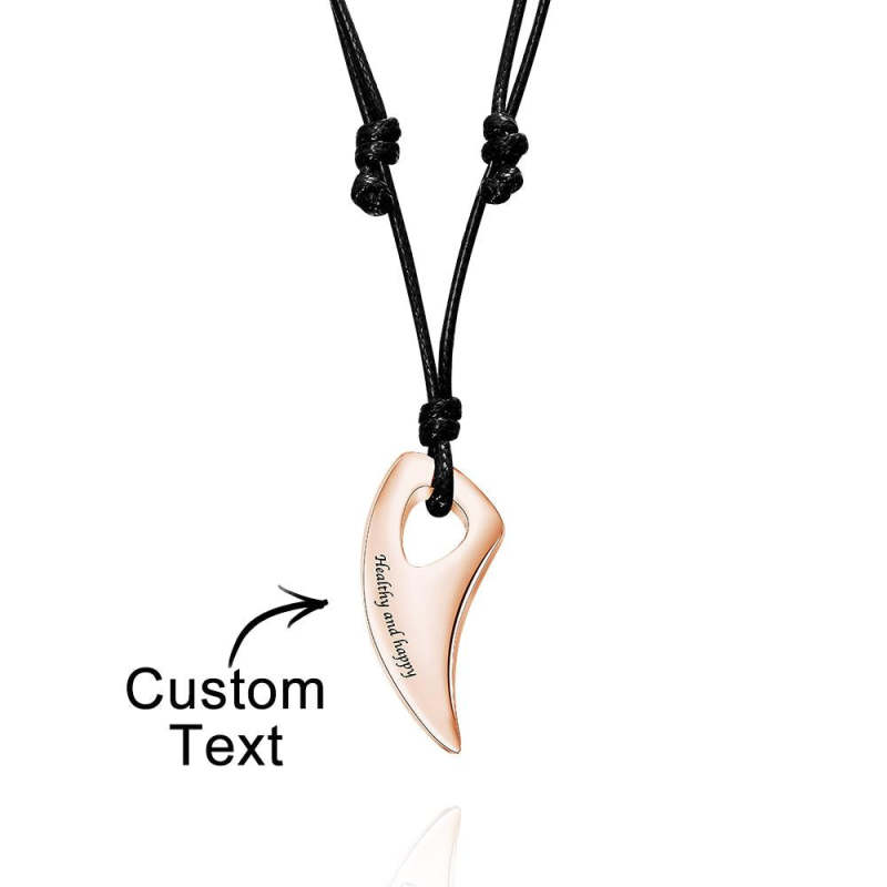 Custom Engraved Necklace Wolf Teeth Pendant Necklace Gift for Men