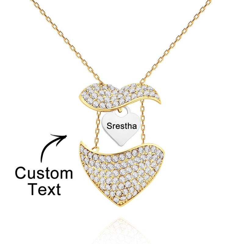 Custom Engraved Openable Message Necklace Heart Shaped Rhinestone Necklace