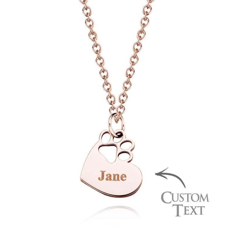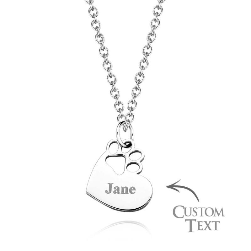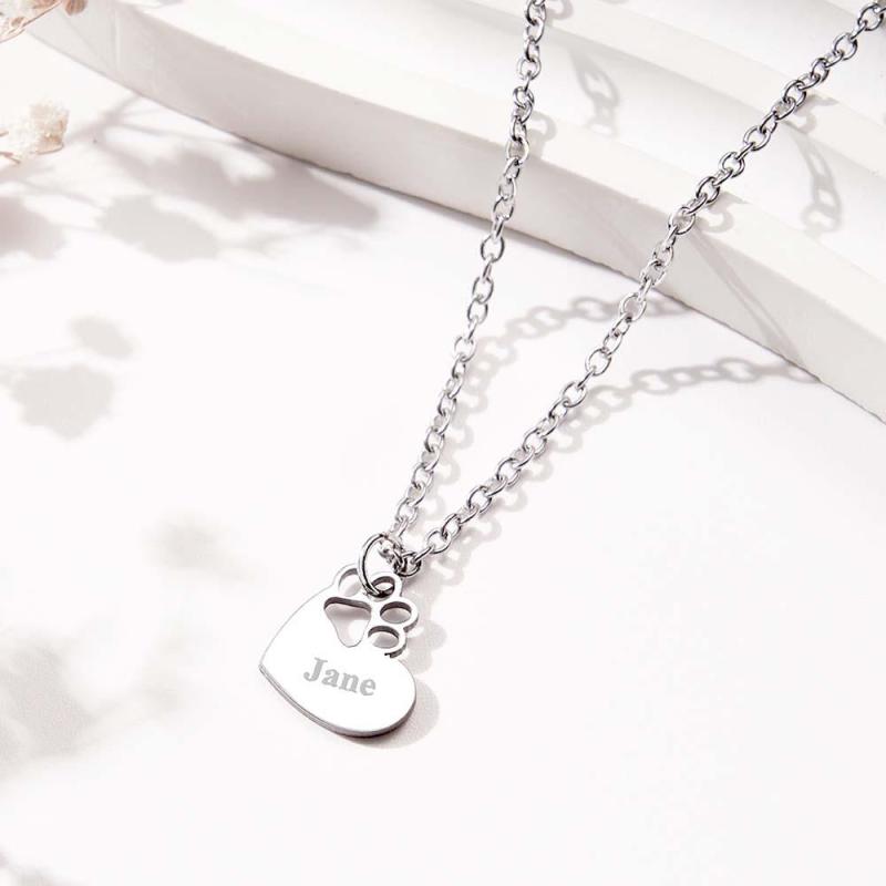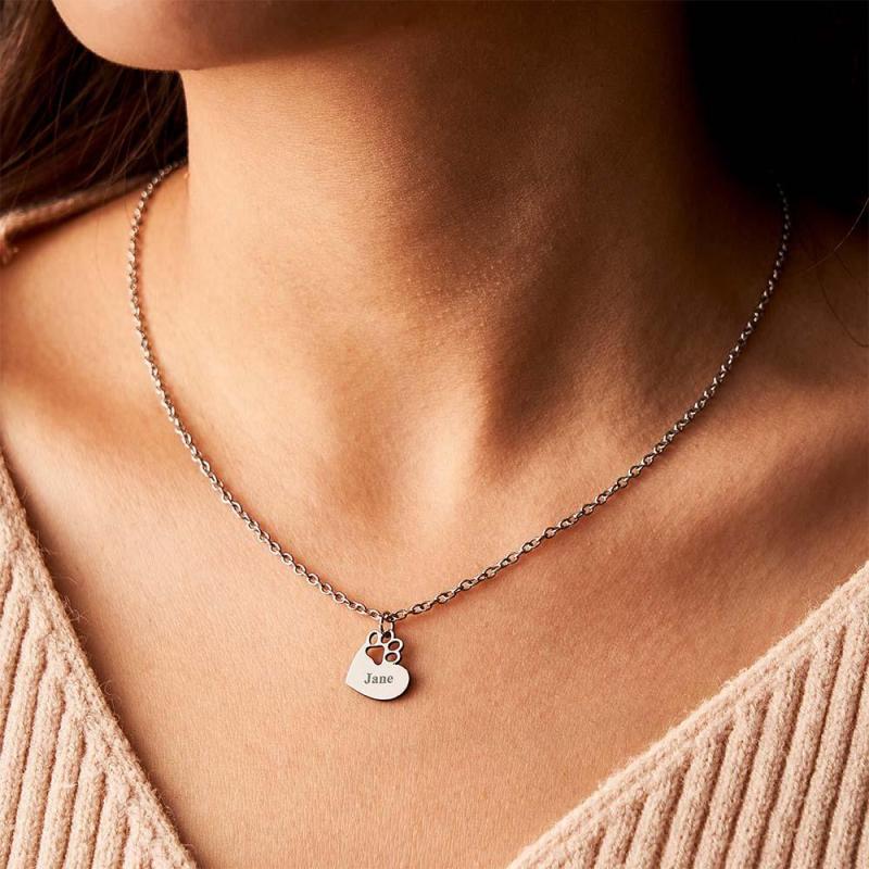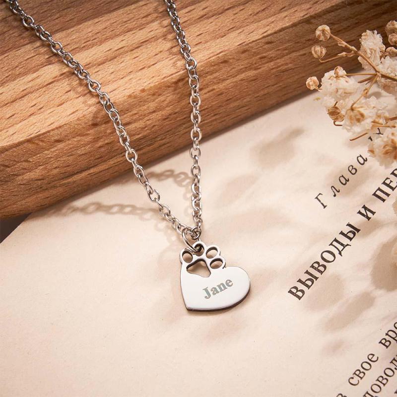 Custom Engraved Pawprint Cutout Heart Necklace Beautiful Pet Theme Pendant Necklace For Pet Lovers