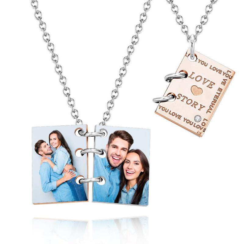 Custom Engraved Photo Necklace Love Story Book Couple Gifts