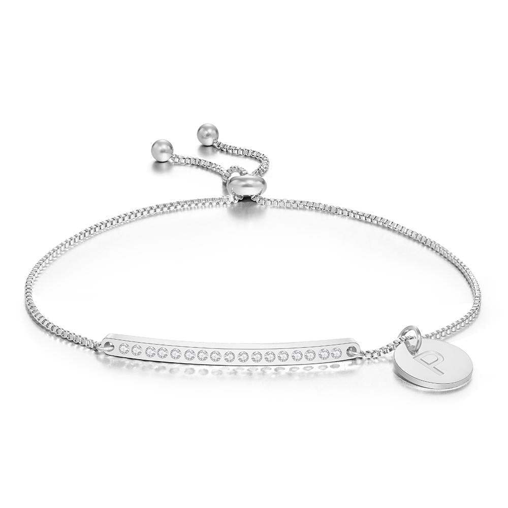 Custom Engraved Rhinestone Bar Bracelet Bracelet With Letter Gift for Girl