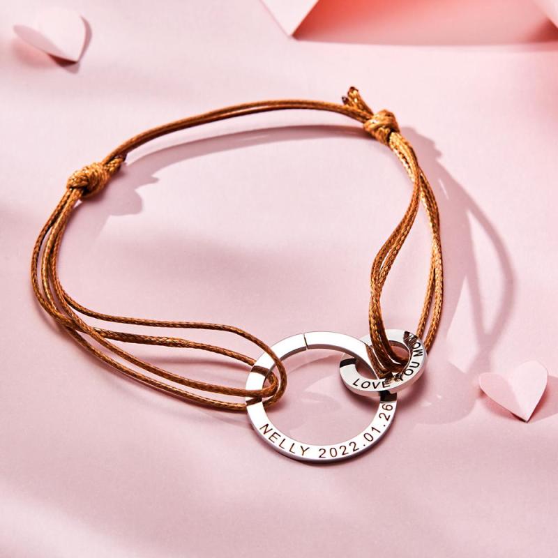 Custom Engraved Two Circles Bracelet Personalized Elegant Bracelet for Women