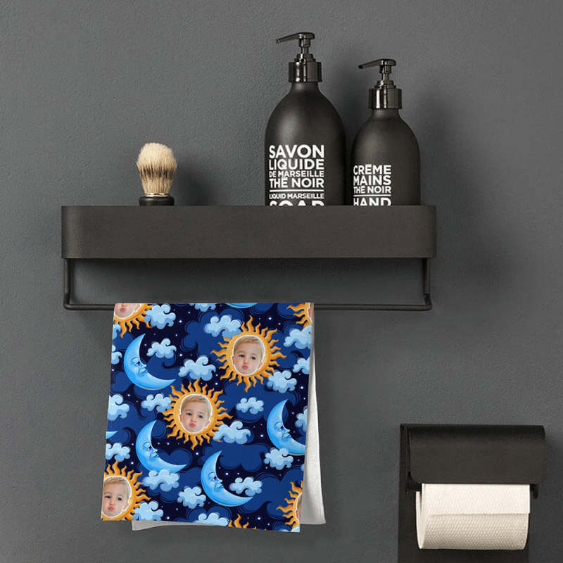 Custom Face Blue Moon Beach Towel Personalized Photo Beach Towel Funny Gift