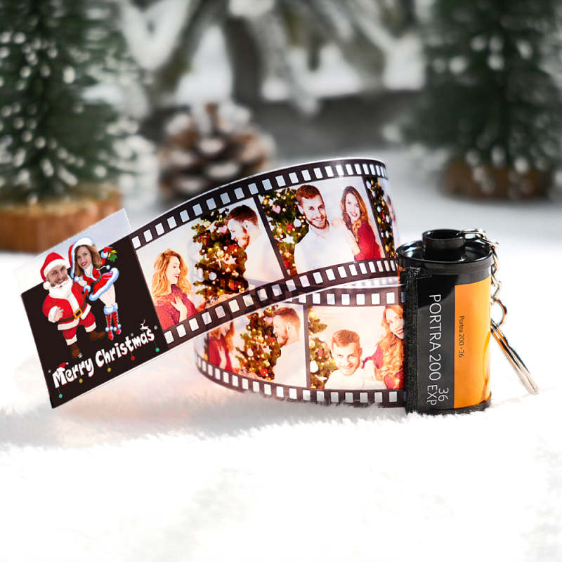 Custom Face Film Roll Keychain Memorial Camera Keychain Christmas Day Gift For Couples