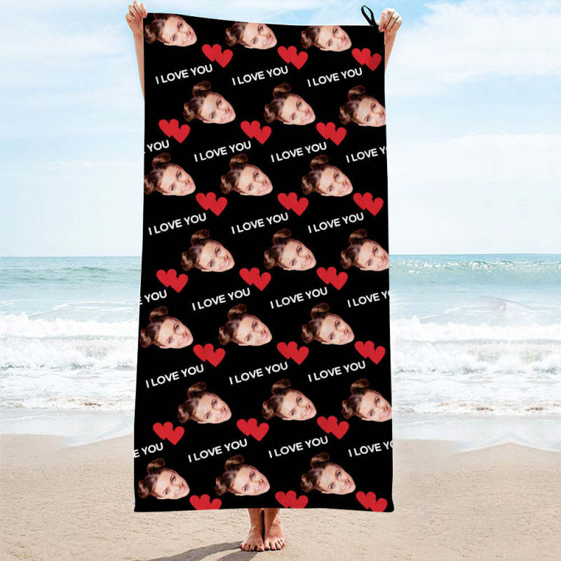 Custom Face I Love You Beach Towel Personalized Photo Beach Towel Funny Gift
