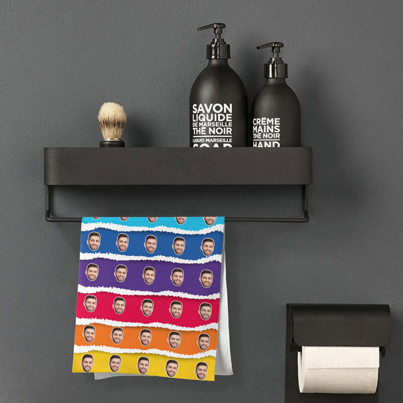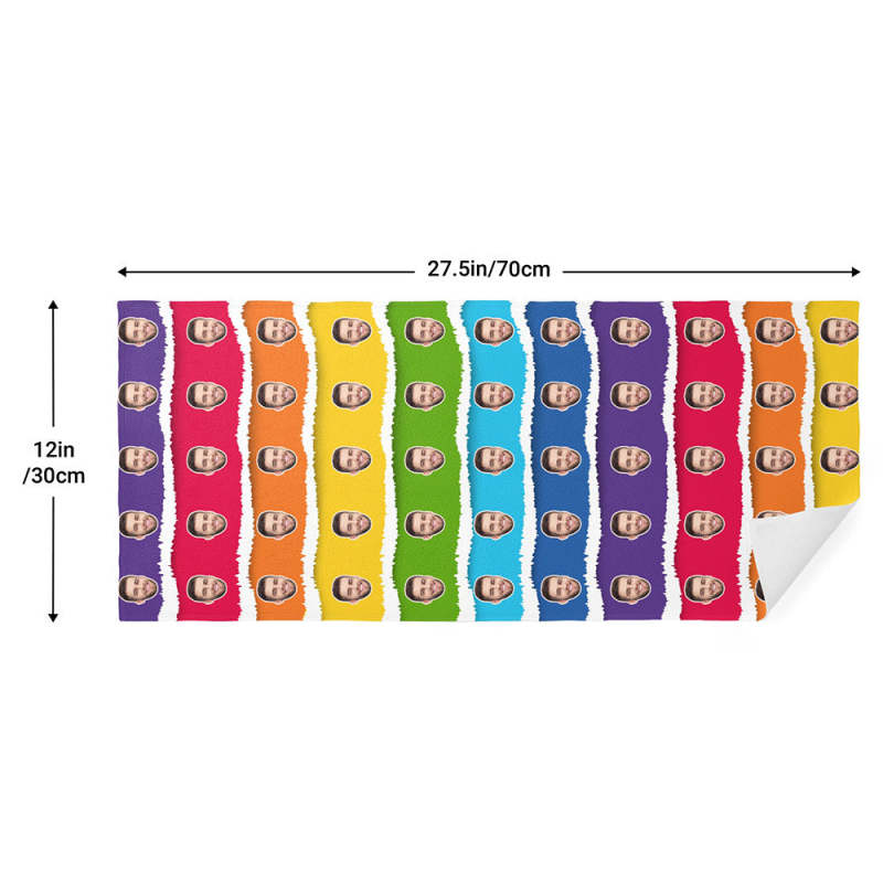 Custom Face Rainbow Cake Beach Towel Personalized Photo Beach Towel Funny Gift