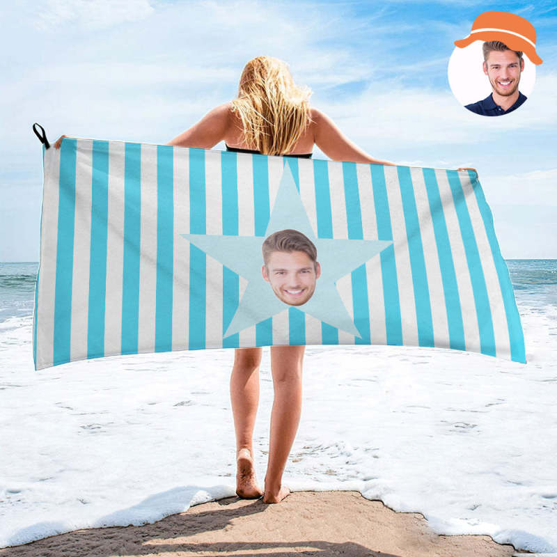 Custom Face Star Beach Towel Personalized Photo Beach Towel Funny Gift