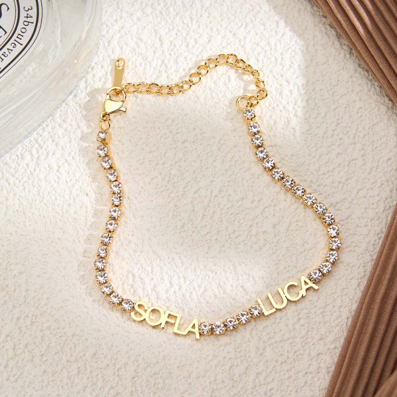 Custom Family Name Bracelet Personalized Name Bracelet with CZ Diamonds Engraved Name Bracelet Sentimental Gift for Her