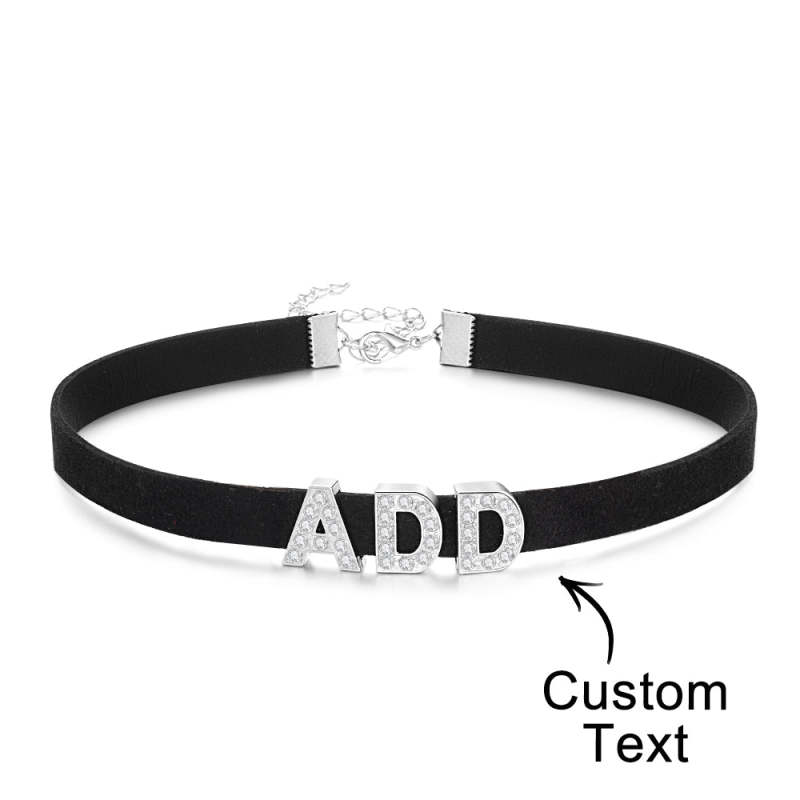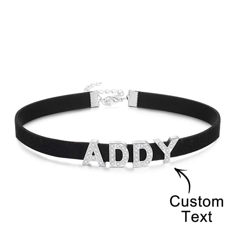 Custom Fashion Letter Necklace Black Leather Choker Collar Personalized Sexy Party Name Necklace Jewelry