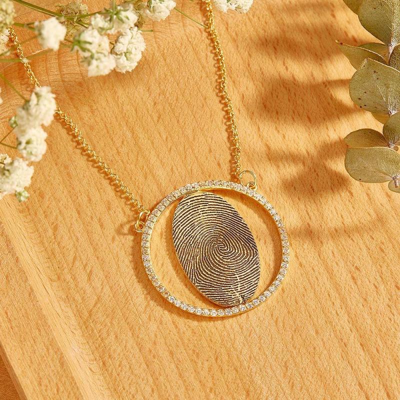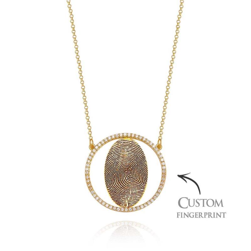 Custom Fingerprint Necklace 18k Gold Plated Personalized Fingerprint Jewelry Memorial Gifts