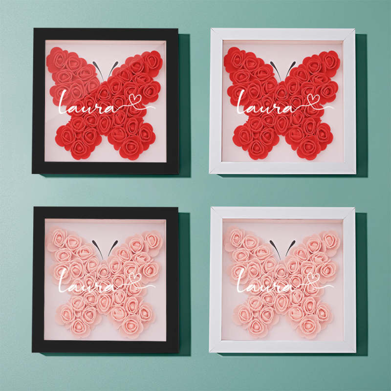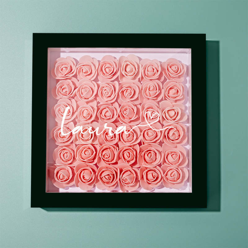 Custom Flower Shadow Box Personalized Name Flower Shadowbox Frame Gift