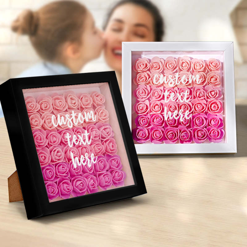 Custom Gradient Pink Flower Shadow Box Personalized Flower Shadowbox Frame Gift for Mom