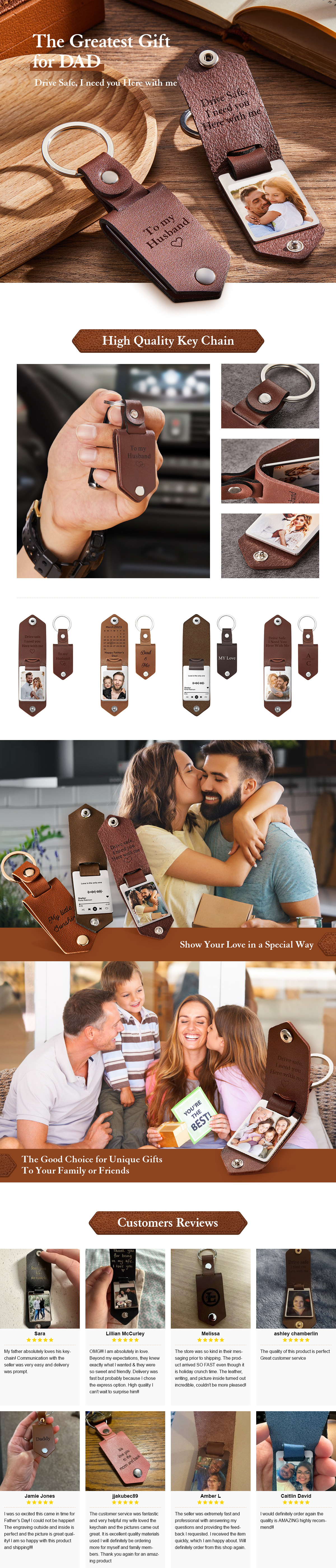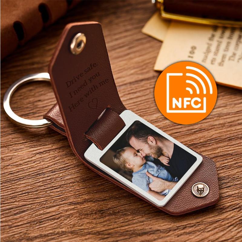 Custom Leather Photo Text Keychain Anniversary Gift For Couple