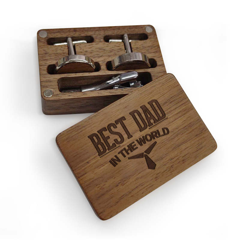 Custom Letter Cufflinks Set Personalized Cufflinks Set with Best Dad Wooden Box Father's Day Gift for Dad