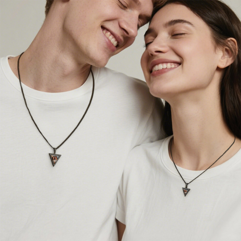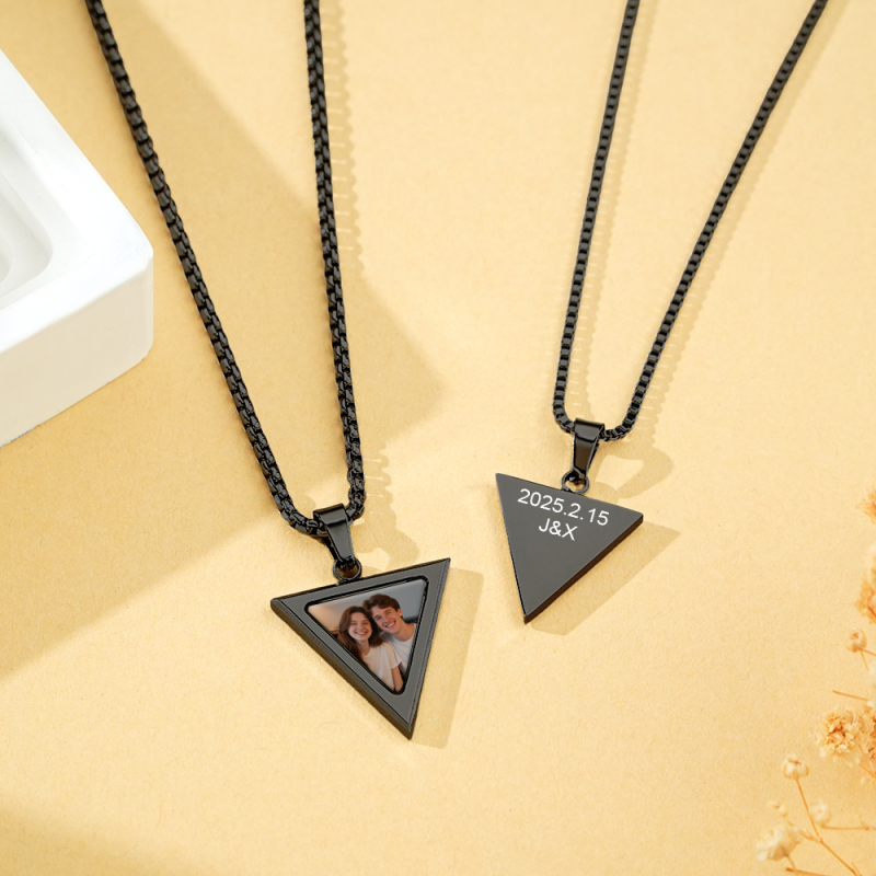 Custom Magical Temperature-Sensitive Photo Projection Triangle Necklace Personalized Photo & Engrave Text Necklace