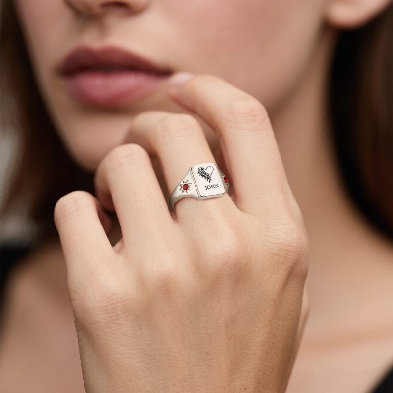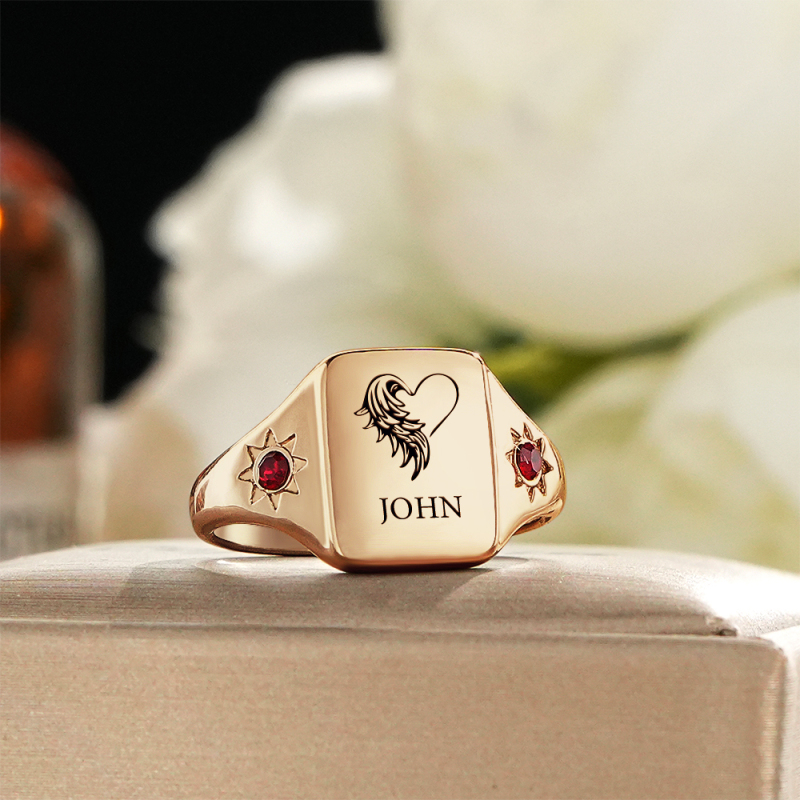 Custom Memorial Birthstone Ring with Angel Wings Personalized Winged Keepsake Ring with Birthstone Memorial Jewelry