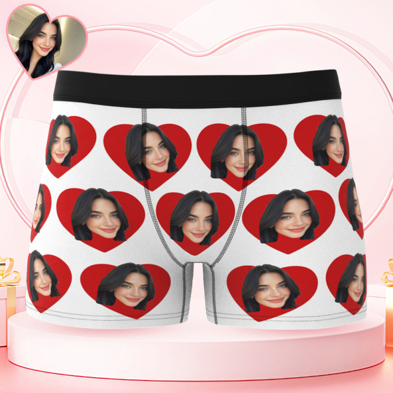 Custom Men's Face Boxers Personalized Photo Love Heart Multicolor Boxer Briefs for Boyfriend Valentine's Day Gift