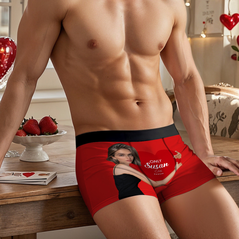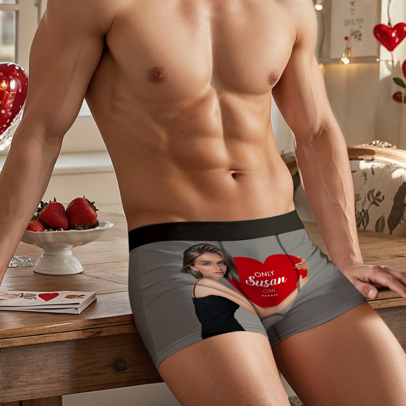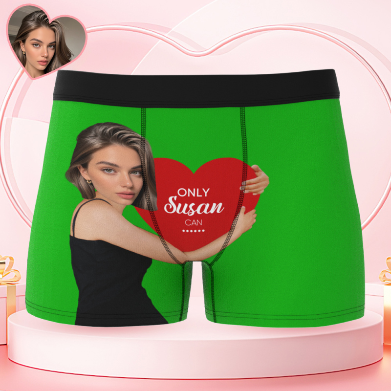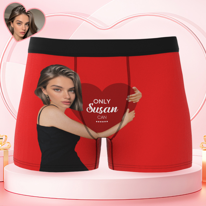 Custom Men's Boxers Personalized Face Boxers with Name Hold Love Valentine's Gift