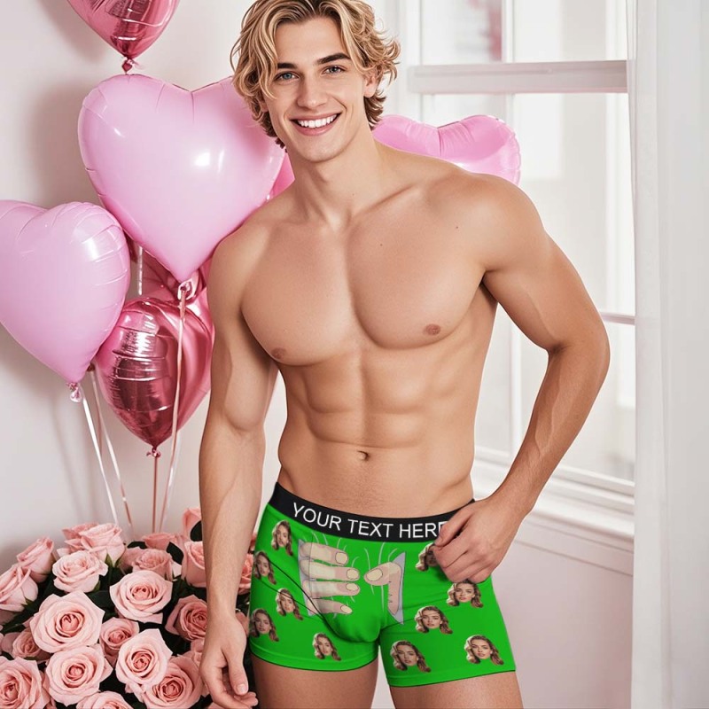 Custom Men's Boxers Personalized Underwear with Face Custom Black Hand All-Over Print Boxer Briefs