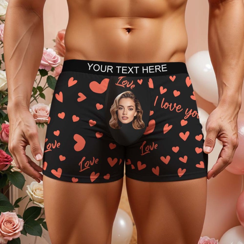 Custom Men's Face Boxer Underwear Personalized Boxer Briefs with Heart Pattern Special Present for Valentine's Day
