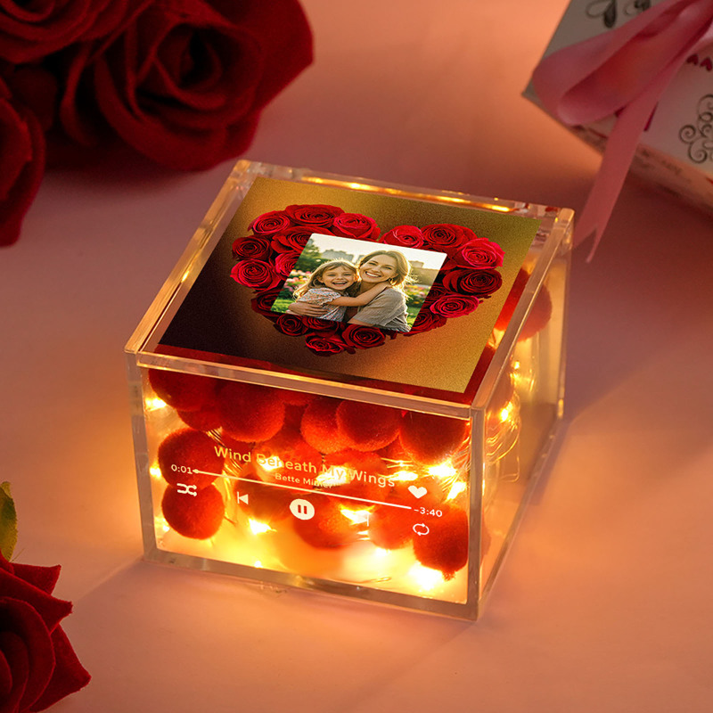 Custom Mini Vinyl Record Player Custom Red Heart Flower Style Photo Engraved Mother's Day Gift for Mum