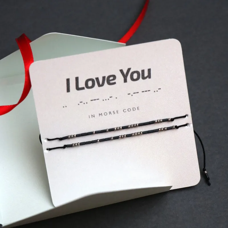 Custom Morse Code Couples Bracelet Set Personalized Secret Message Bracelet Set Hidden Message Jewelry for Him and Her