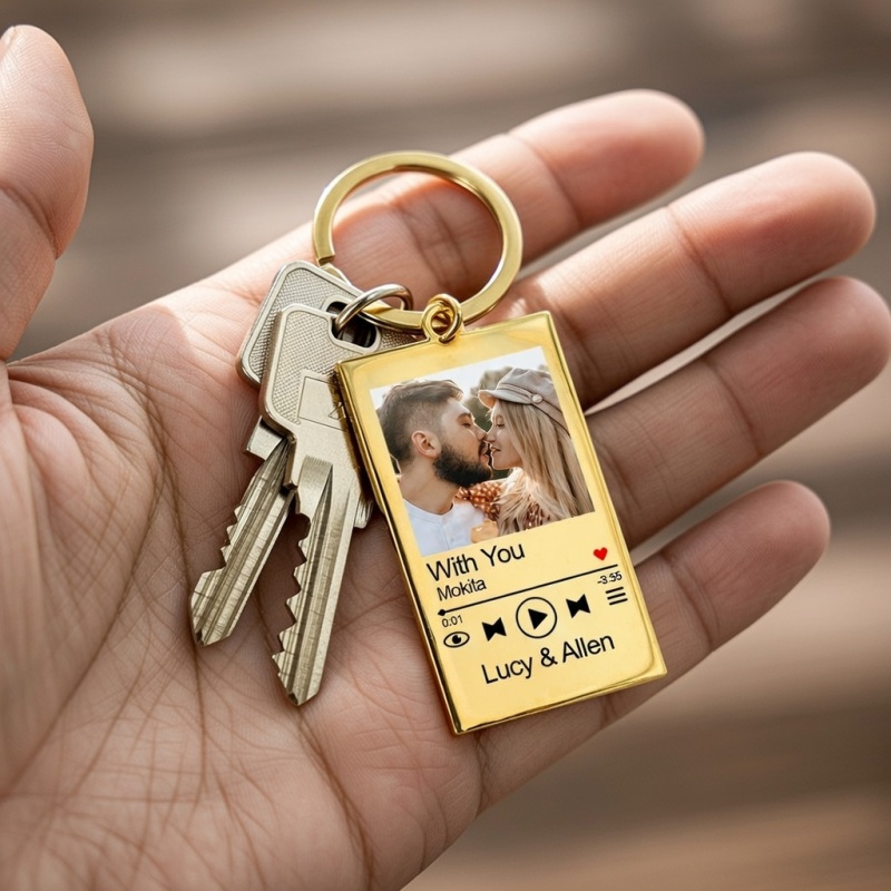 Custom Music Player Photo Keychain Personalized Song Cover Art Keyring Romantic Couple Gift Valentine's Day Gifts