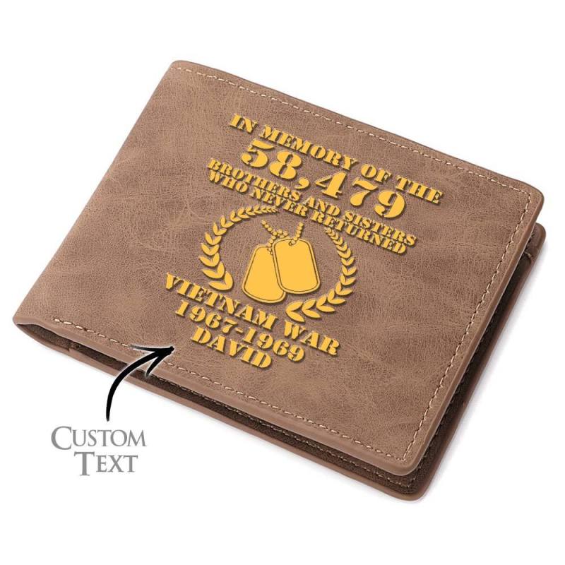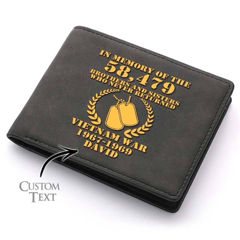 Custom Name and Year Vietnam Veteran Men's Leather Wallet Memorial Gifts