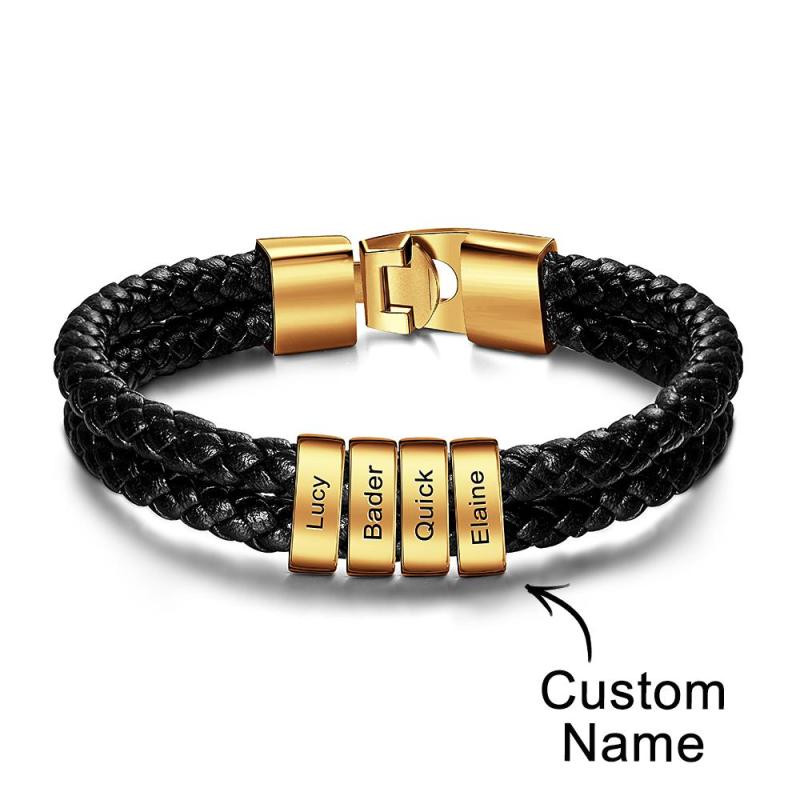 Custom Name Bracelet Braided Leather Personalized Gifts for Men