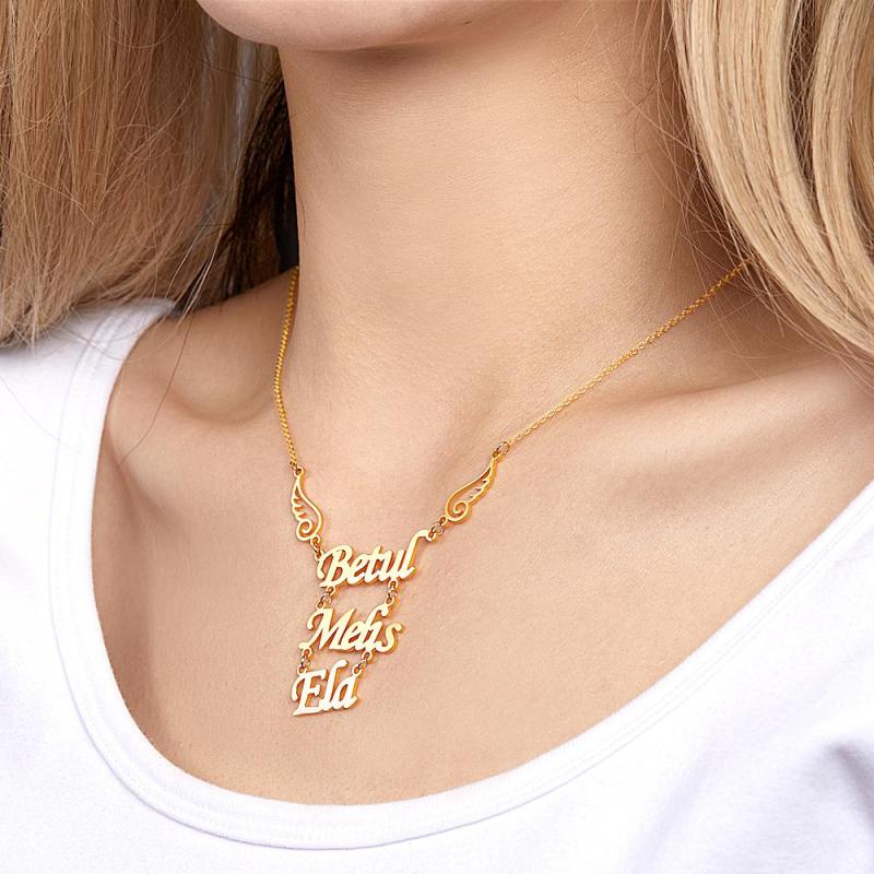 Custom Name Necklace Angel Wings Pendant Necklace Birthday Gift for Women