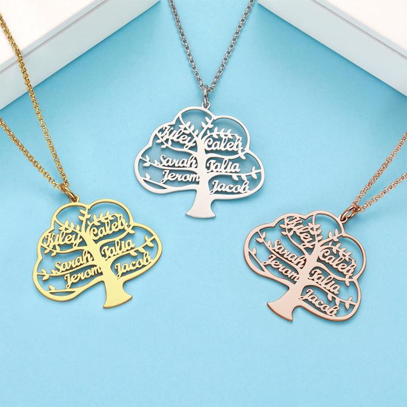 Custom Name Necklace Christmas Tree Pendant Necklace Personalized Gift For Family|1-6 Names
