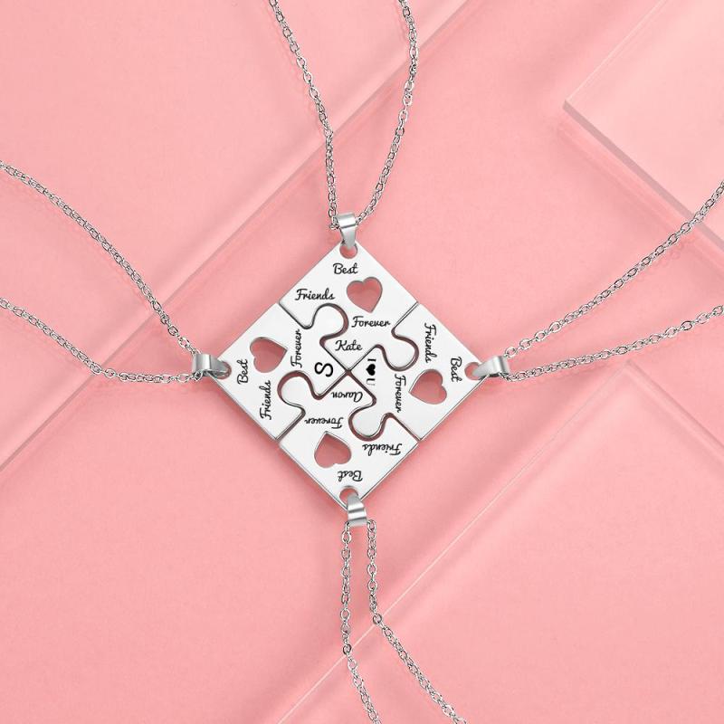 Custom Name Necklace Engraved Name Necklace Set Personalized Gift Silver