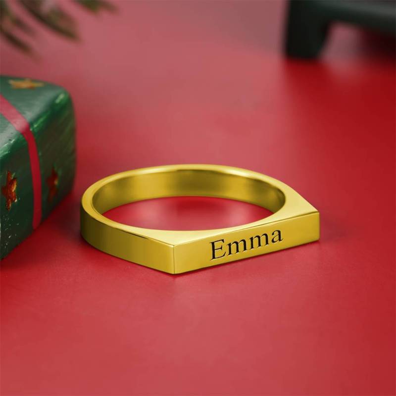 Custom Name Ring Engraved Bar Ring 14K Gold Plated