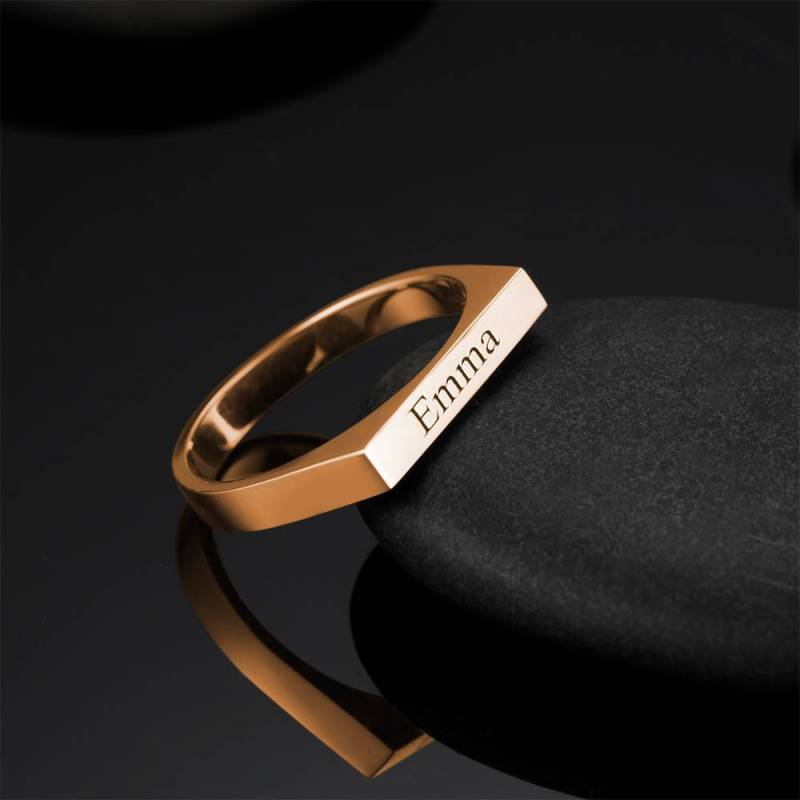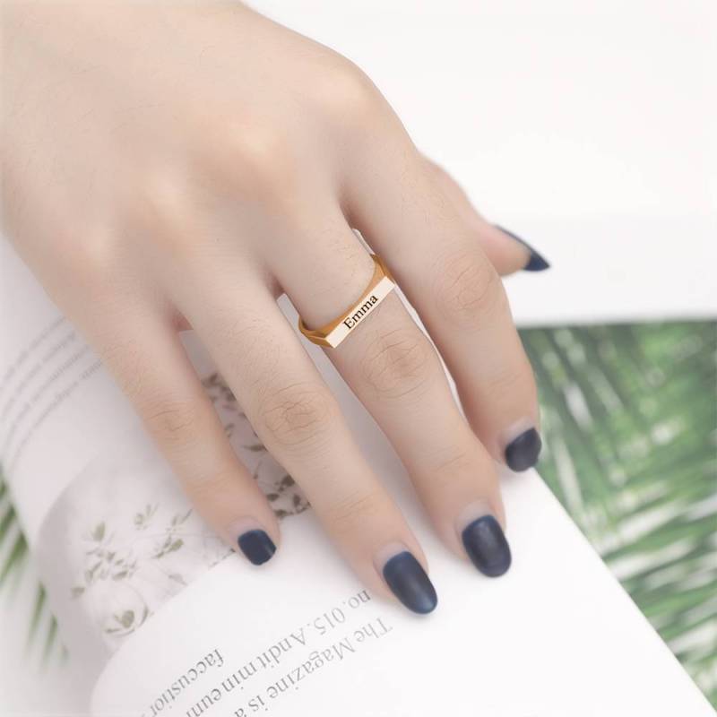 Custom Name Ring Engraved Bar Ring Rose Gold Plated