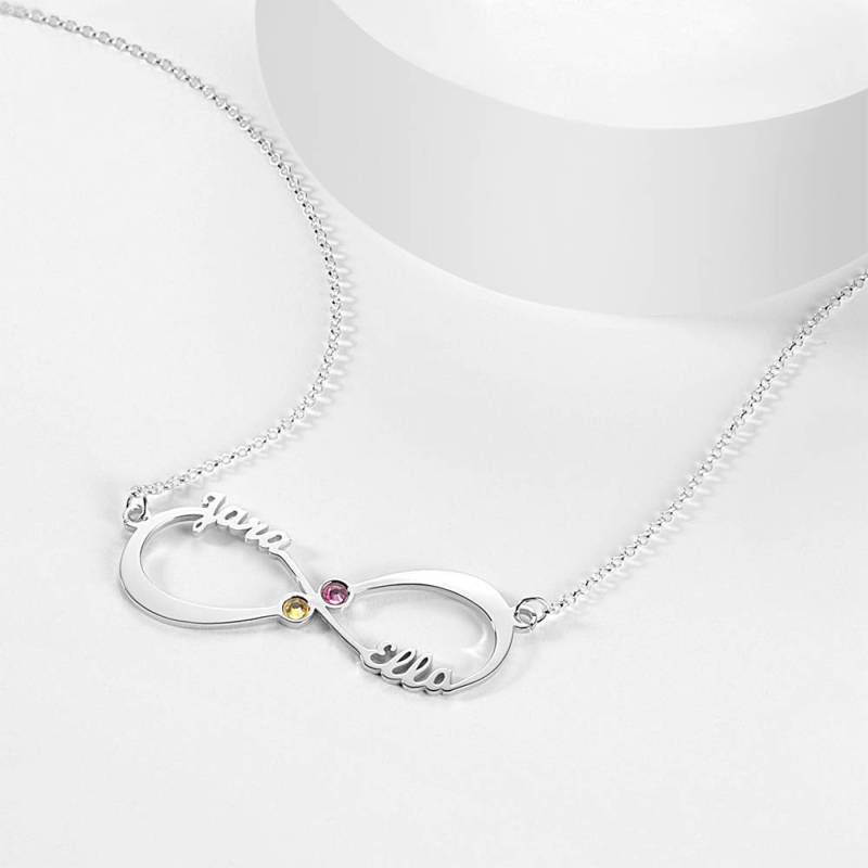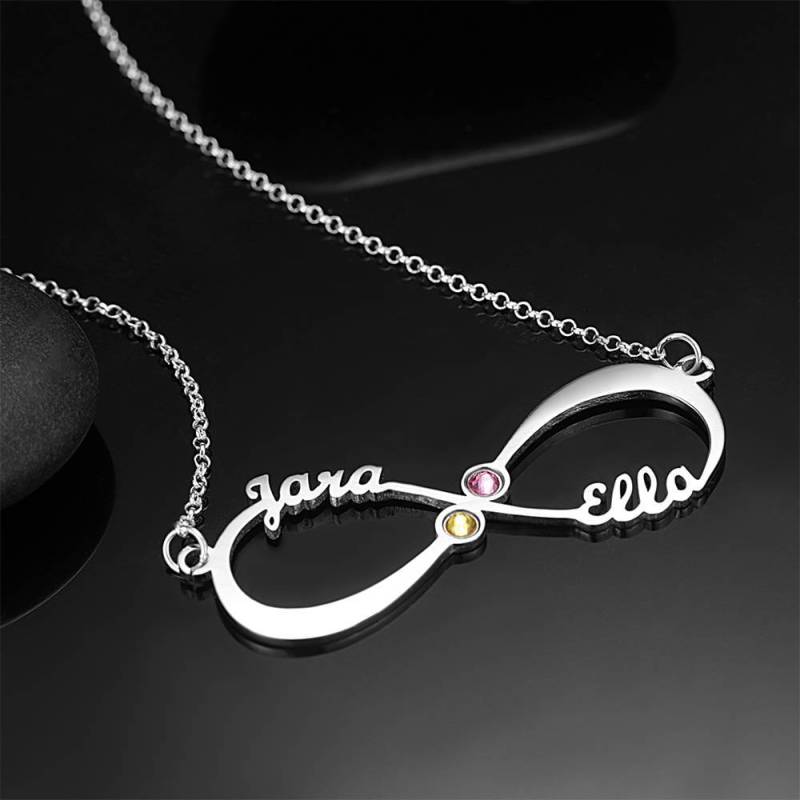 Custom Personality Name Necklace with Birthstone Infinity Necklace 14K Gold Plated