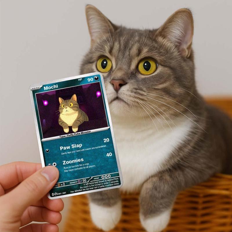 Custom Pet Trading Card Gift from Photo – Personalized Cartoon Style Poster for Cat Lovers