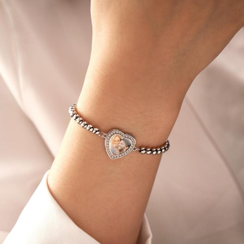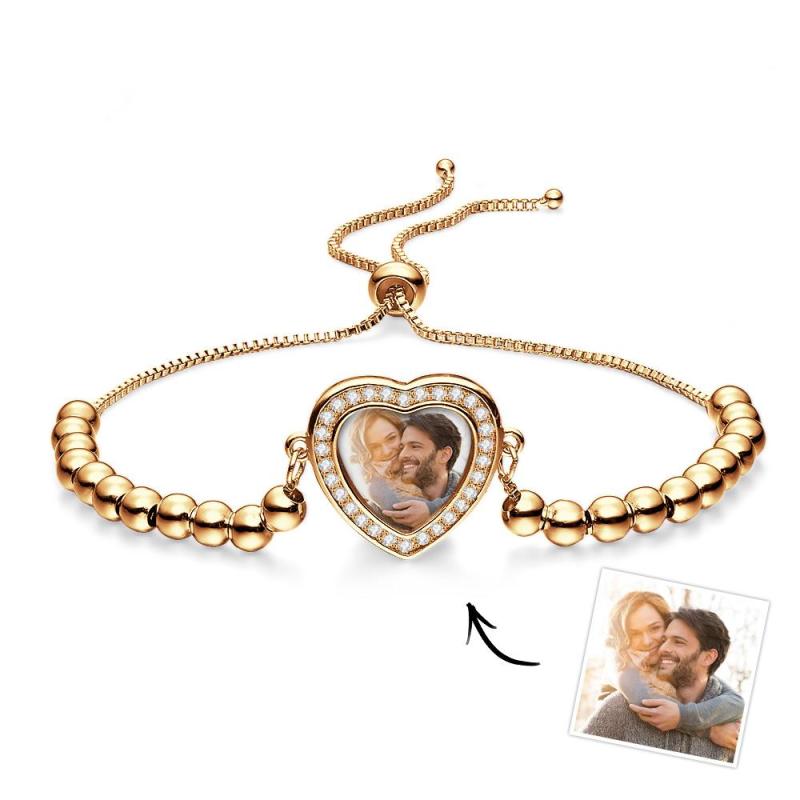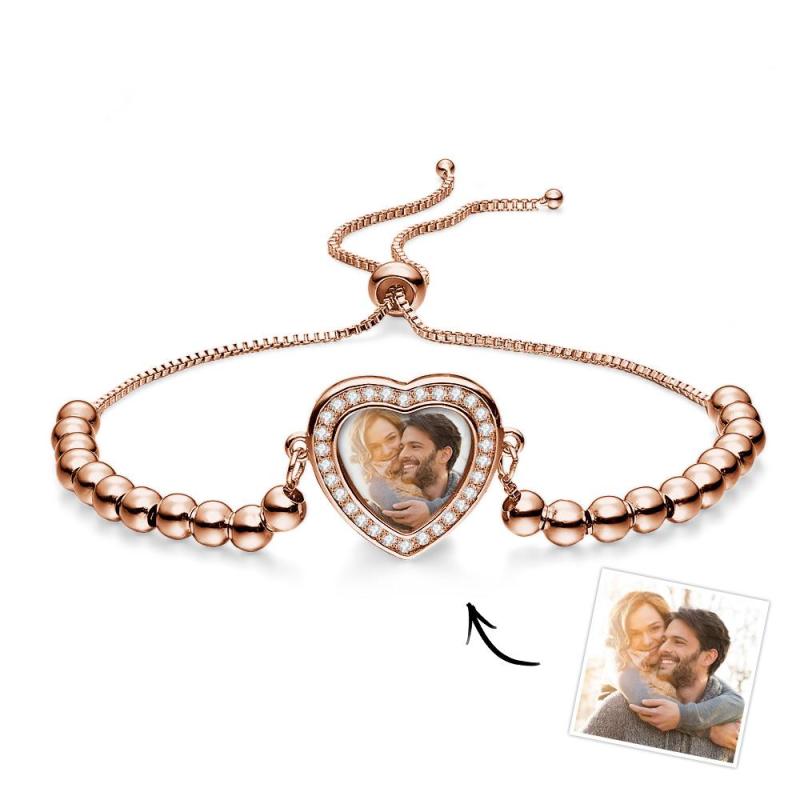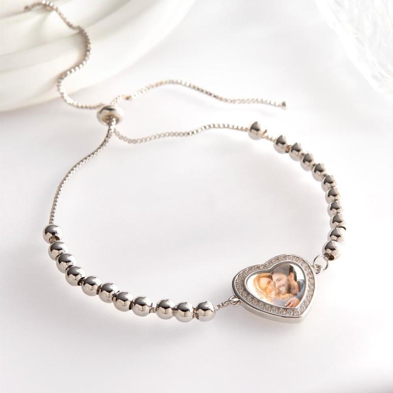 Custom Photo Bracelet Personalized Beads Heart Zircon Pendant Adjustable Bracelet Gifts For Women