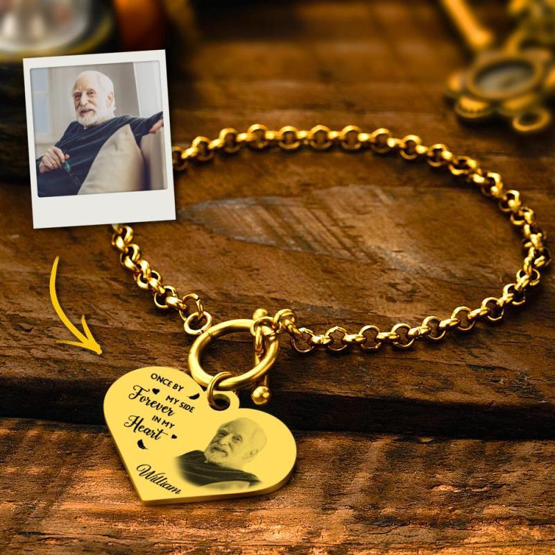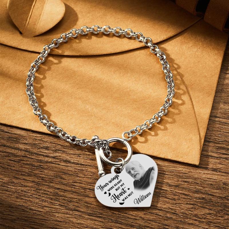 Custom Photo Bracelet with Heart Memorial Engraved Bracelet Engraving Stainless Steel Bracelet