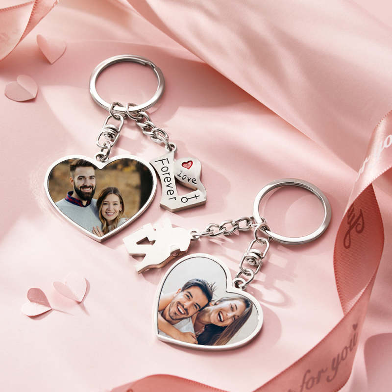 Custom Photo Couple Keychain Heart Shaped Pendant Creative Keychain Gift for Love
