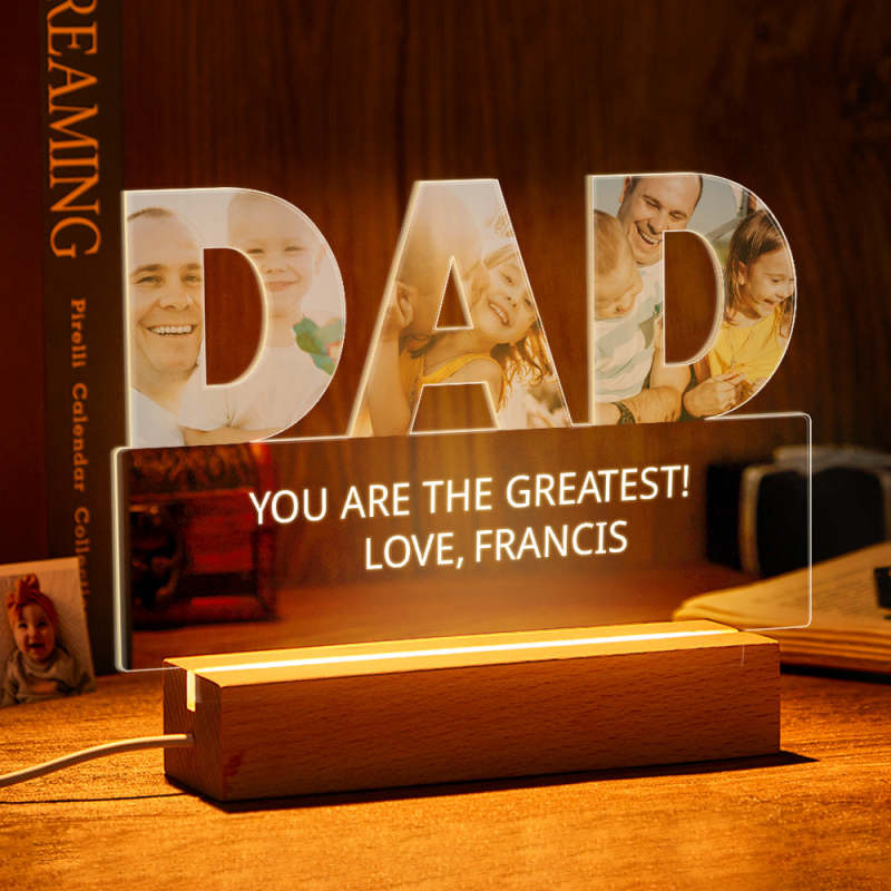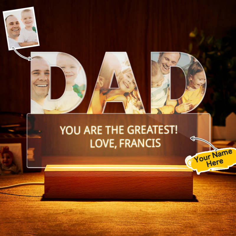 Custom Photo Engraved Acrylic Night Lights Photo Light Home Ornaments Gift for Father