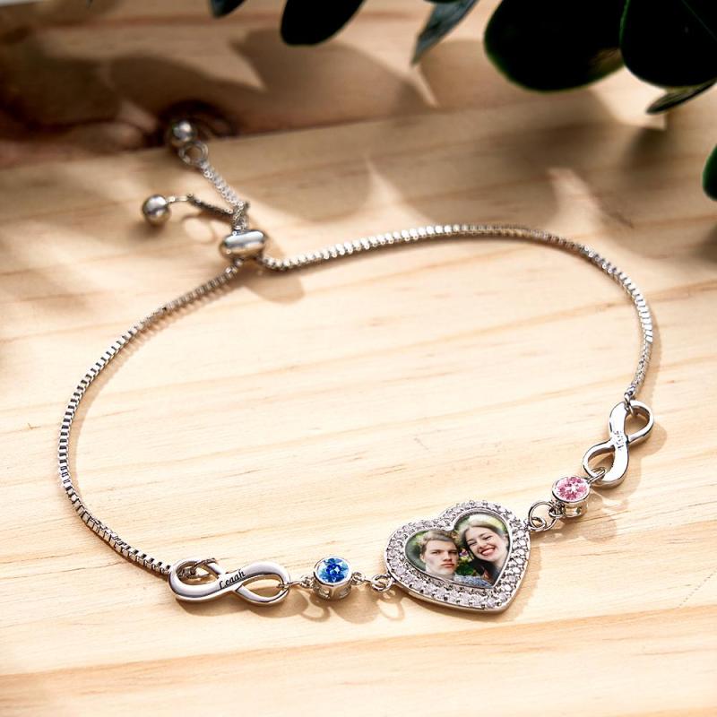 Custom Photo Engraved Birthstone Bracelet Infinite Love Delicate Gifts