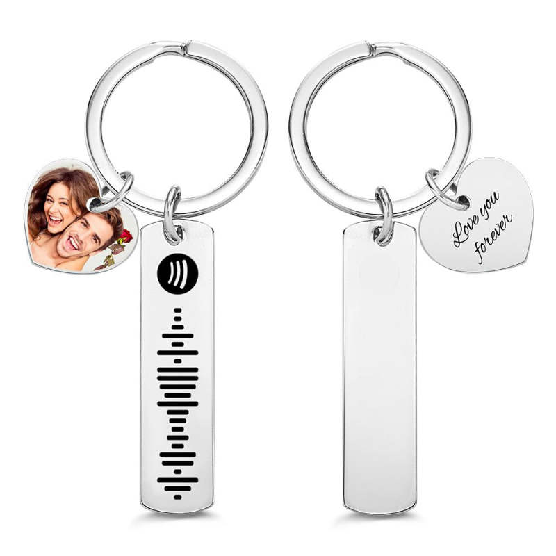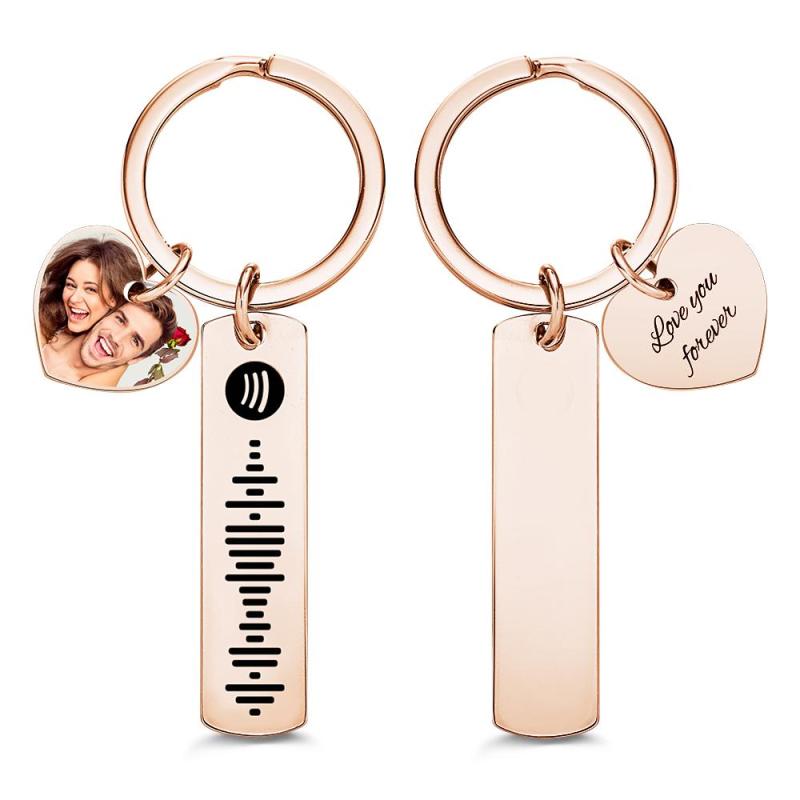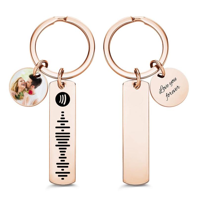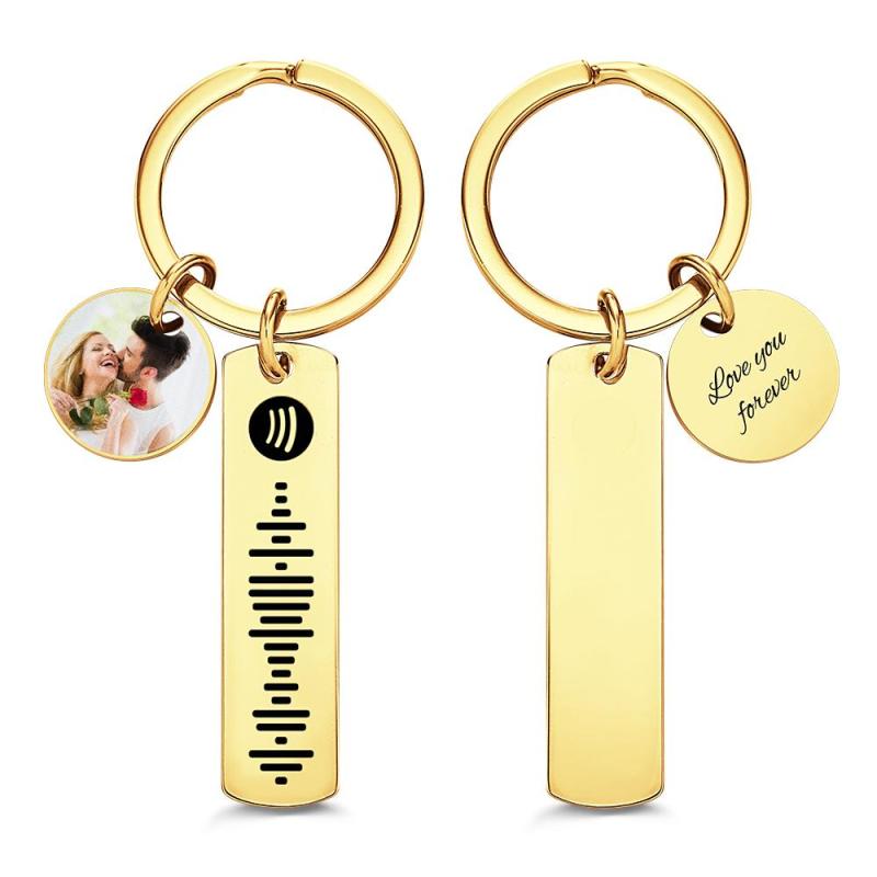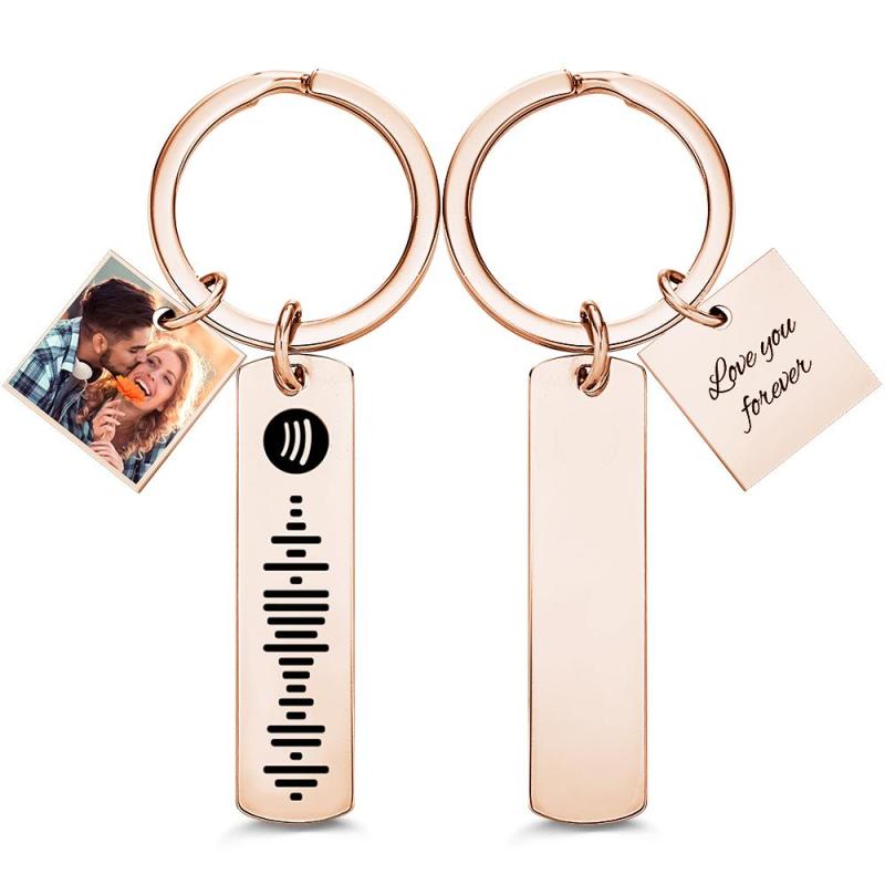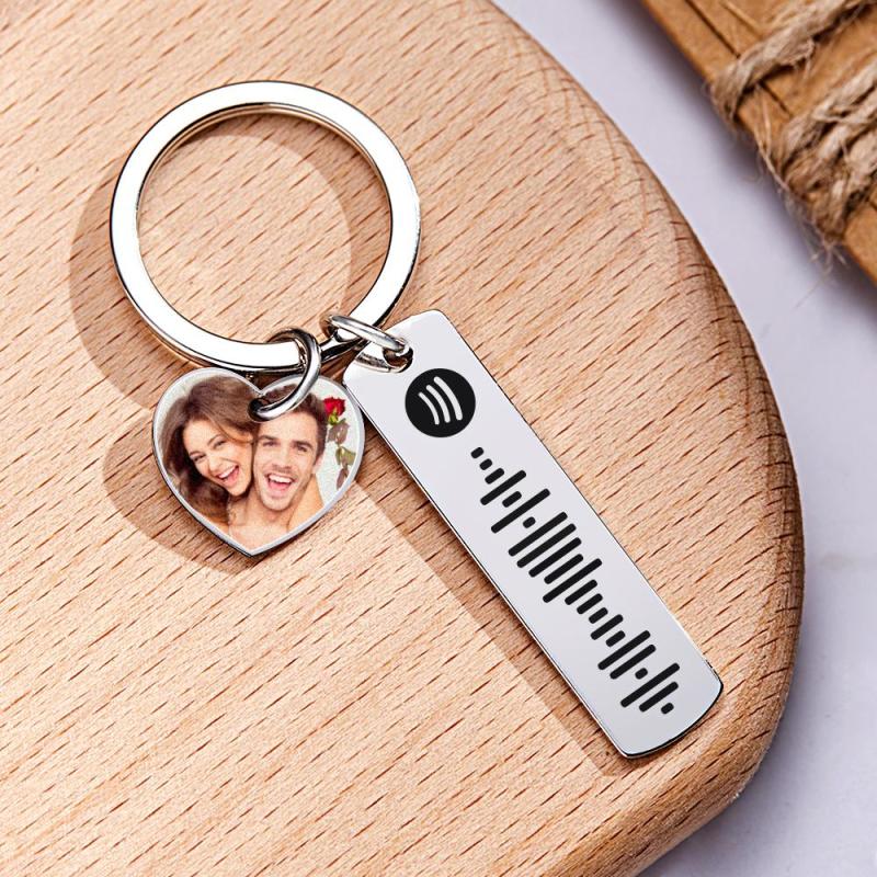 Custom Photo Engraved Keychain Scannable Spotify Code Creative Gifts
